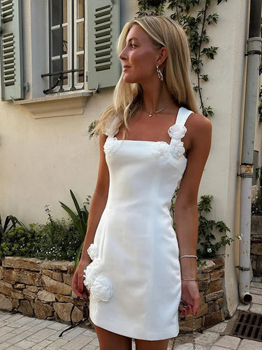 Playful and polished, this sculpting mini dress makes a statement with 3D floral appliqués placed along the neckline and hem. The structured bodice and wide straps offer support and shape, while the bold colour ensures you stand out at any event—from garden parties to summer birthdays.