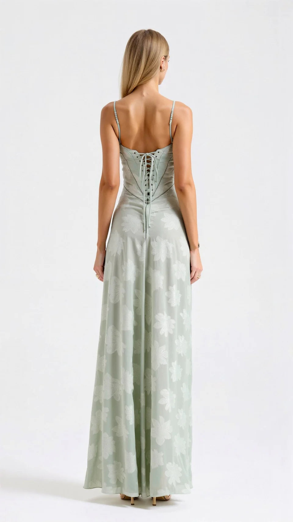 Light as air and full of grace. This floral jacquard gown features a structured sweetheart bodice and a flowing A-line skirt that moves with elegance—perfect for turning moments into memories.