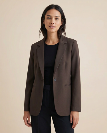 This elegant blazer in a rich Dark Cocoa Brown offers a sophisticated alternative to traditional black, perfect for both professional and casual settings. The tailored fit gently hugs the waist, creating a flattering silhouette that enhances femininity without compromising comfort. Featuring a timeless notched lapel and a sleek single-button closure, this blazer embodies a modern aesthetic that is both chic and versatile.