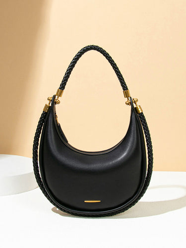 Timeless meets contemporary. This crescent-shaped shoulder bag is crafted in smooth faux leather with braided top handles and gold-tone hardware for an effortlessly polished look.