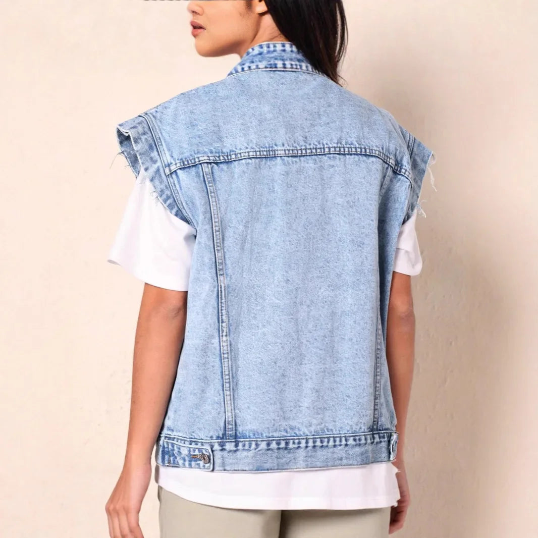 A timeless layering essential designed for effortless street style and modern everyday dressing. This women’s oversized denim vest brings a relaxed, urban edge to your wardrobe, perfect for creating chic layered looks all year round. Style it over dresses, tees, or lightweight knits for an on-trend, minimalist aesthetic with a cool vintage-inspired finish.